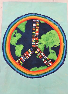 There were posters of doctors, nurses and other medical staff. We were pleased to see that our students make a connection between the efforts of, for example, the NHS, and the theme, "Peace in Service"Niamh BowersMy peace poster shows the world as one human race on the same journey for kindness, fairness, equality and tranquillity. My seven rainbow people signify the 7 continents of the world coming together. The post tumbling down on the right signifies the world communicating in a time where face to face isn't possible. The nurse and her rainbow represent the human heroes of our time. The whole world is under a magnifying glass to show our current worry, loss and strain of the coronavirus. Peace is important for our healthy bodies, minds and hearts. To survive the world needs peace |